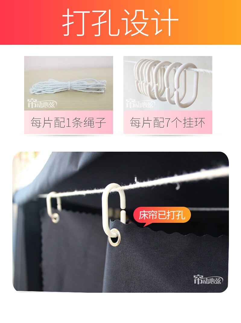 Bed curtain college student dormitory pure black blackout curtain male and female dormitory upper bunk dormitory simple bed curtain hanging curtain