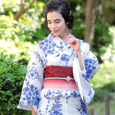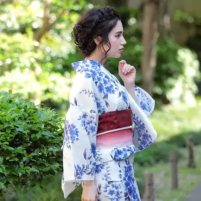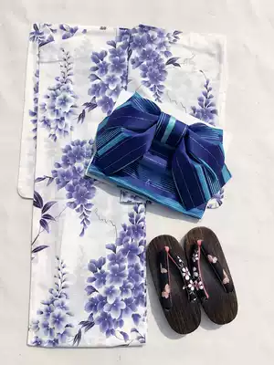 Good cargo volume less Japanese fabric cotton high-grade kimono bathrobe wisteria
