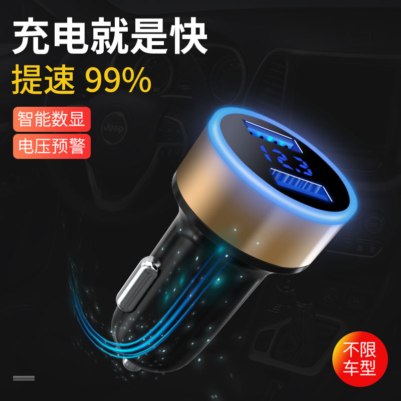 5A on-board charger multifunction mobile phone quick charge one drag two USB plug cigarette lighter convert head with atmosphere light