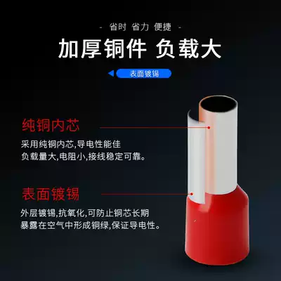 Copper E7508 tube type terminal European pin-shaped small black clip pre-insulated terminal block VE copper terminal 0 75 square