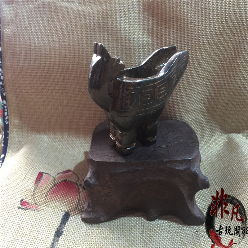 Anti-Ming and Qing Dynasty pulping old Xiuyu meteorite beast head wine glass handle ornaments jade bi high ancient jade antique collection old objects