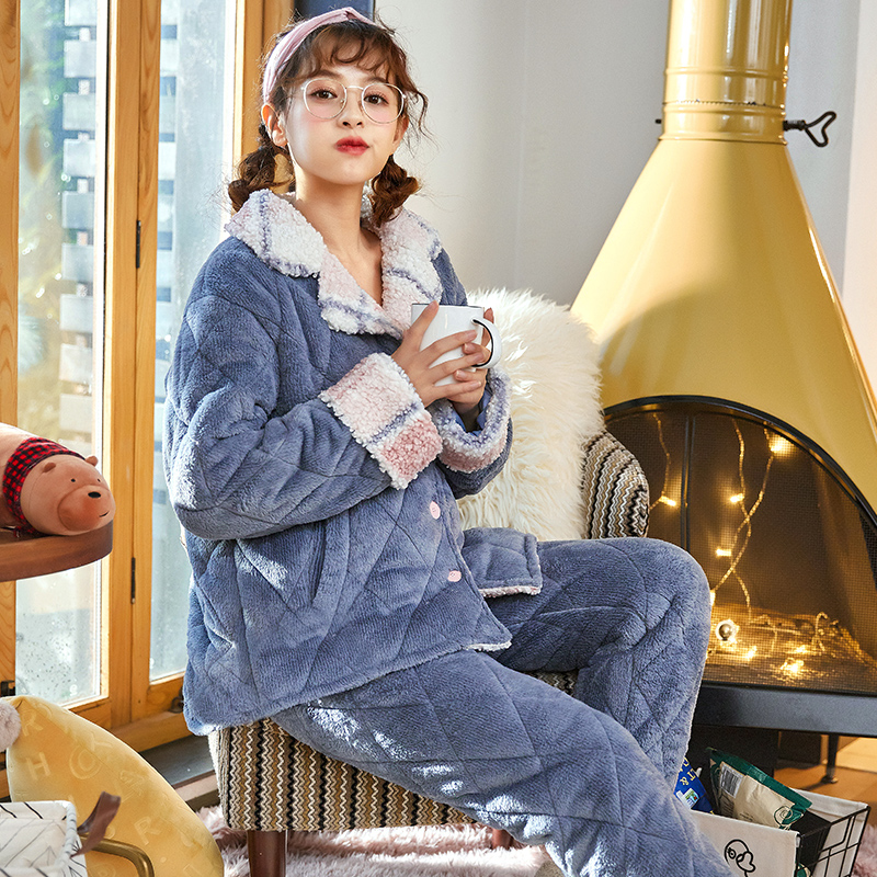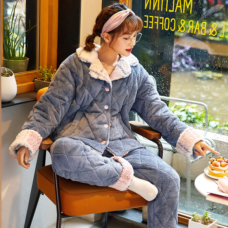 Pajamas women's autumn and winter warm flannel coral velvet thickened three-layer padded cotton girlfriends net red home clothes suit