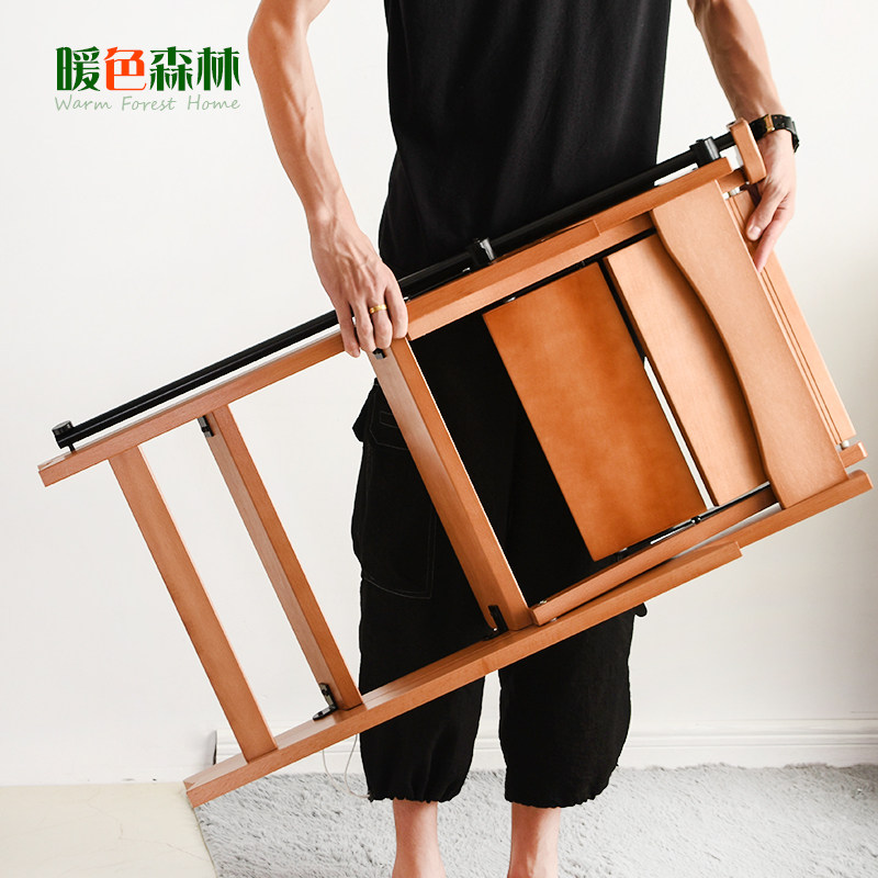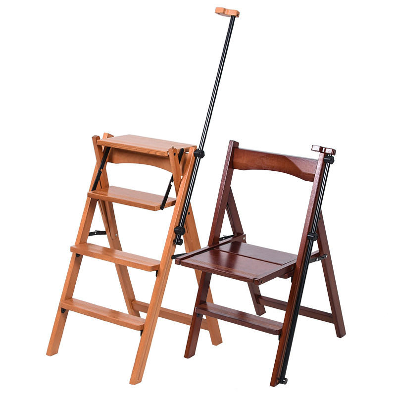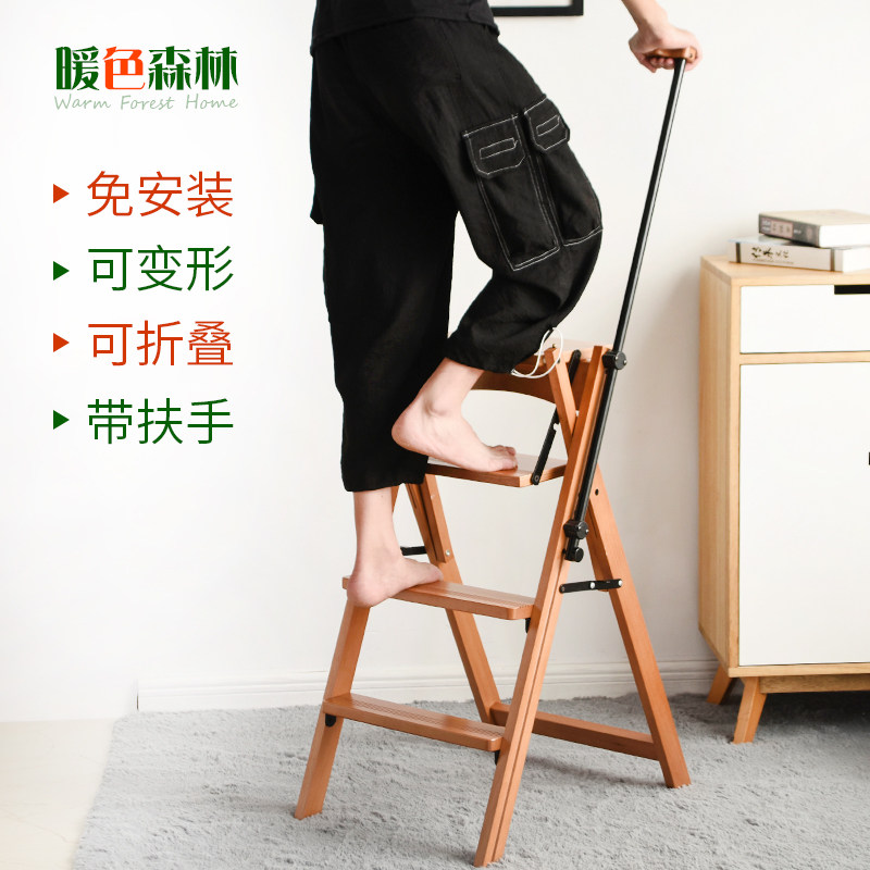 Solid wood household ladder four-step indoor folding ladder chair multi-function dual-use armrest climbing ladder stool herringbone installation-free