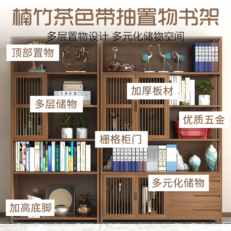 New Chinese-style bookcase with five layers 52 (double doors) New Chinese-style bookcase with five layers 68 (single door) New Chinese-style bookcase with five layers 68 (single door and three drawers) New Chinese-style bookcase with five layers 68 (double doors and three drawers)