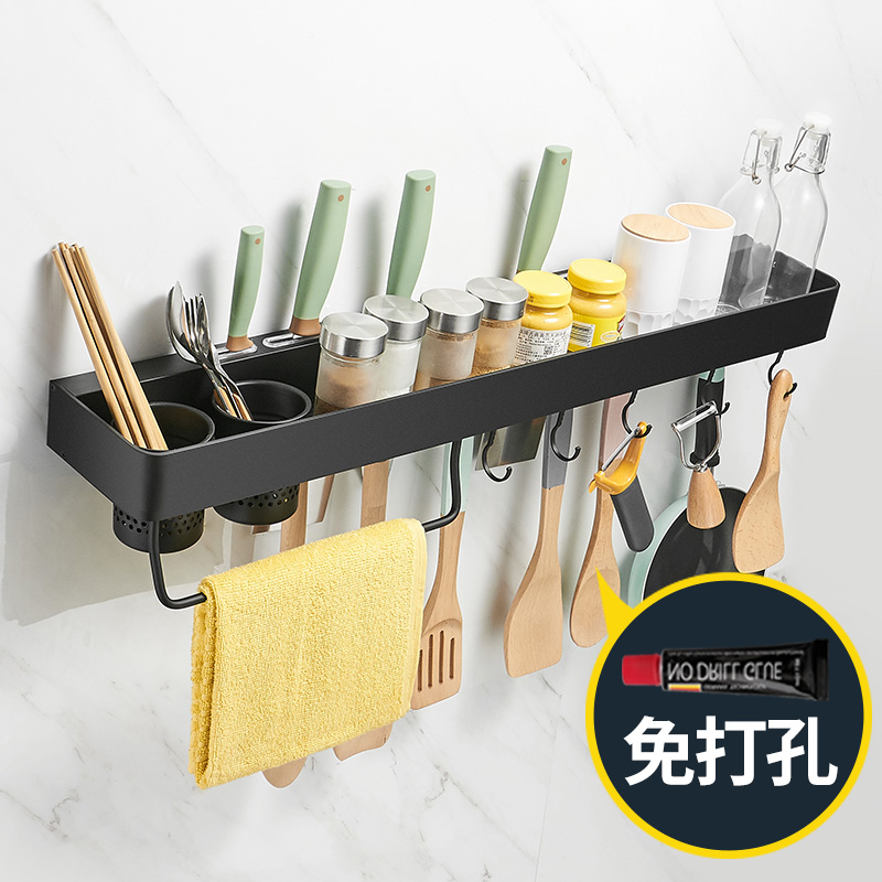 Punch-free black kitchen holder knife holder wall hanging storage artifact seasoning vegetable board holder household chopsticks tube