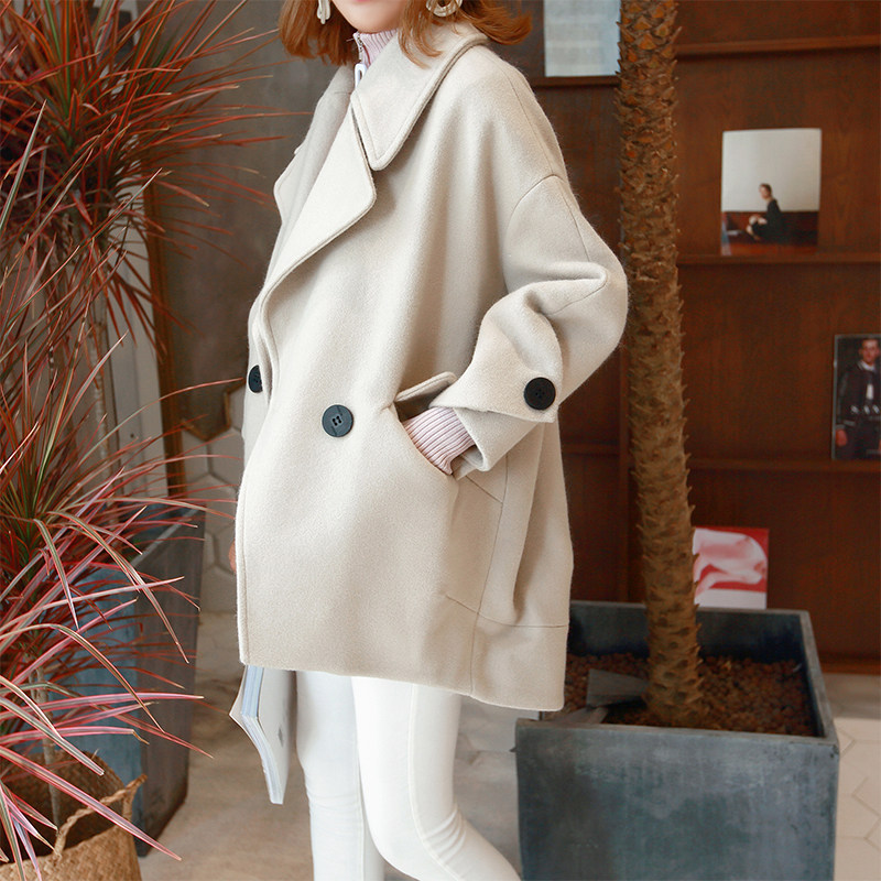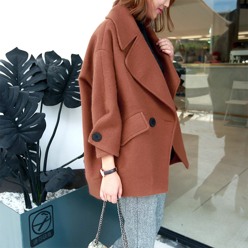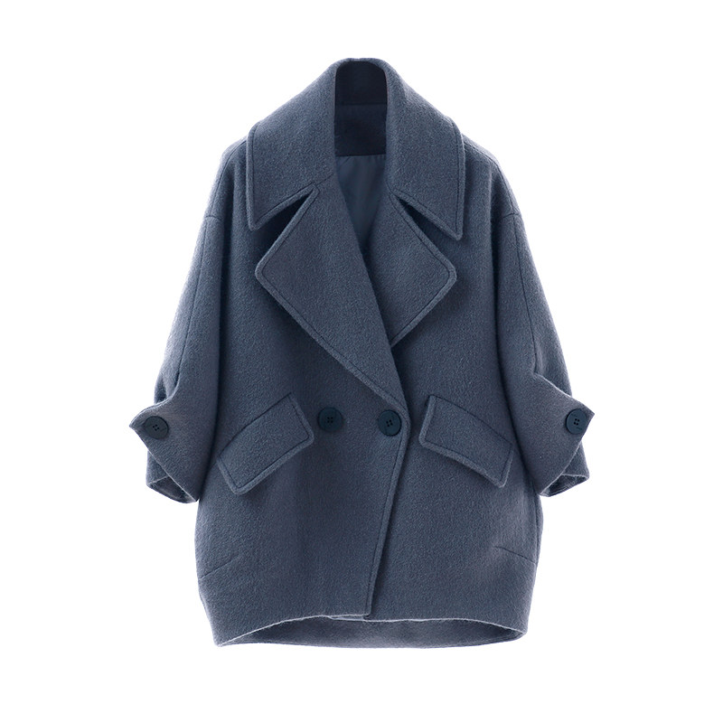 Design sense niche autumn and winter wear cocoon small woolen coat women's small short Hepburn style woolen coat women
