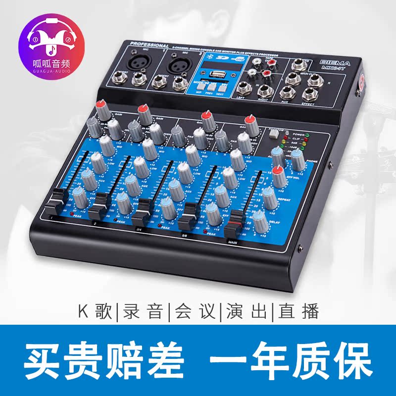 Biema MX04T professional 6-way mixer with Bluetooth U disk recording MP3 network K song mobile phone live broadcast