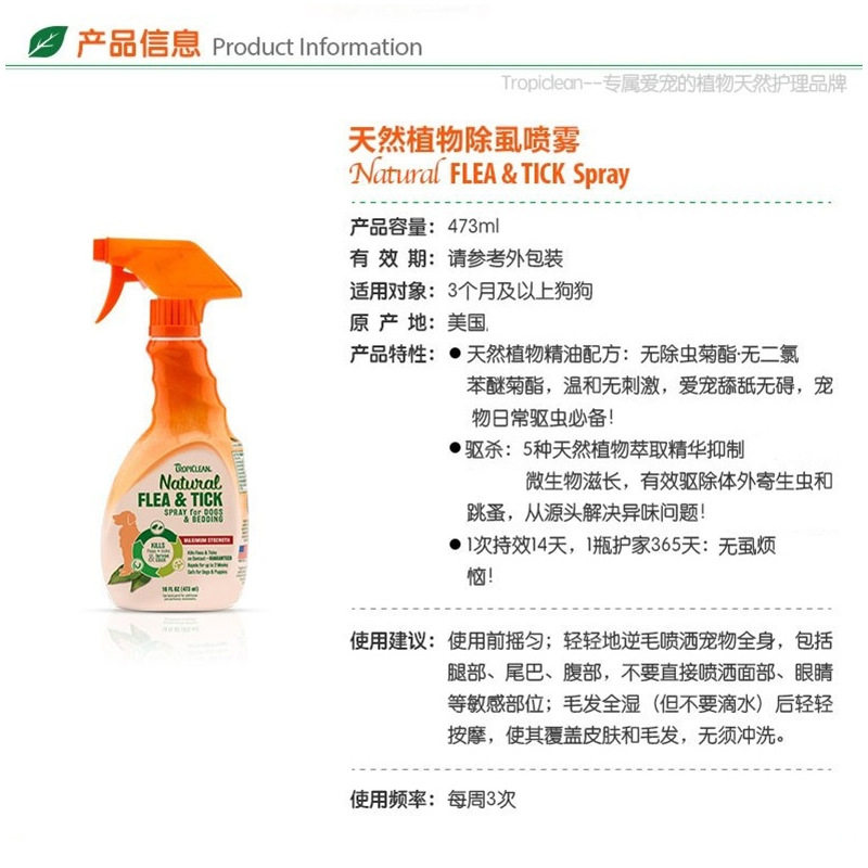 American Duomejie natural plant deodorant and flea spray to kill ticks and lice (pet dry cleaning) smell aroma
