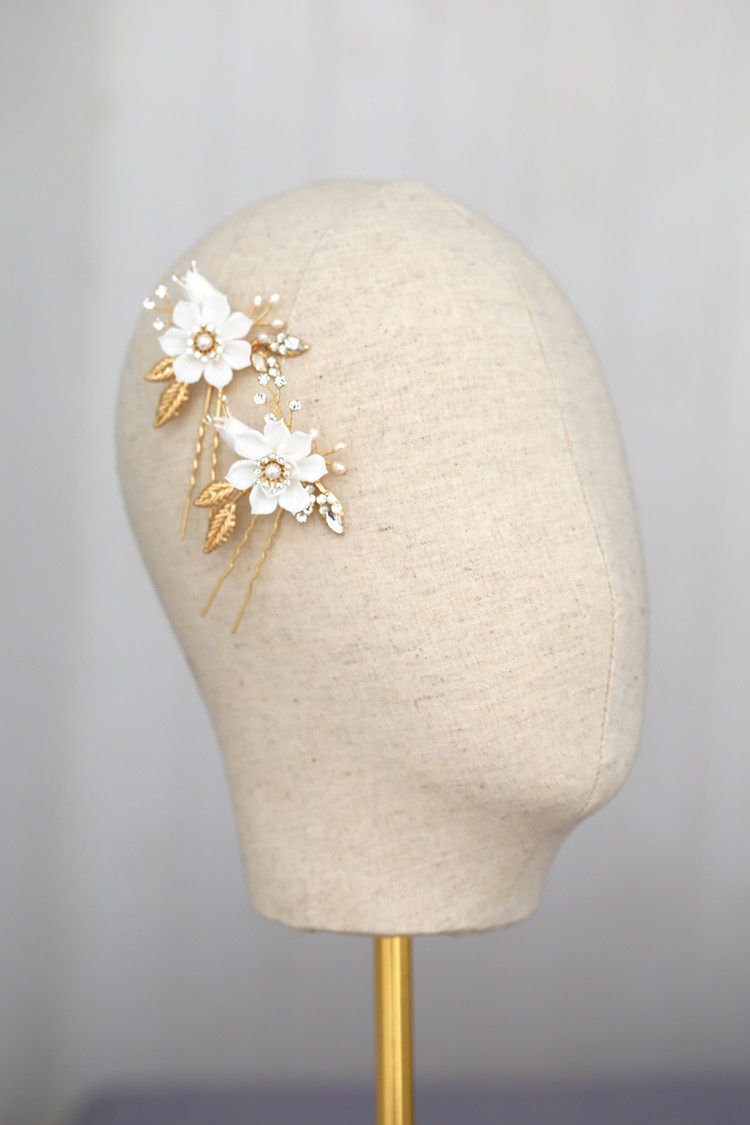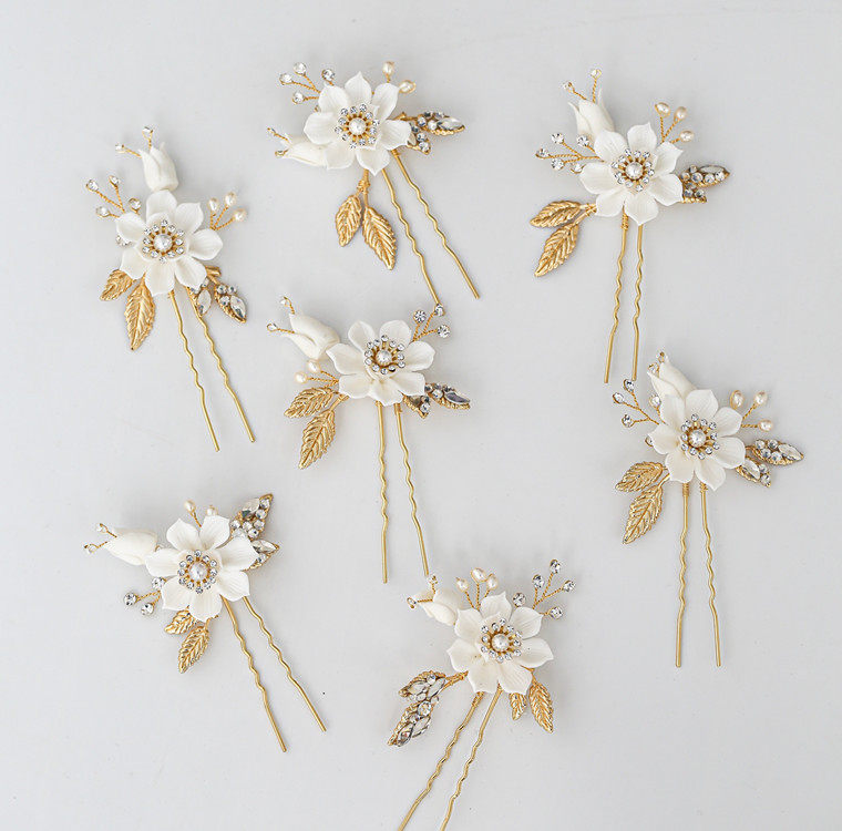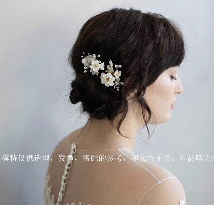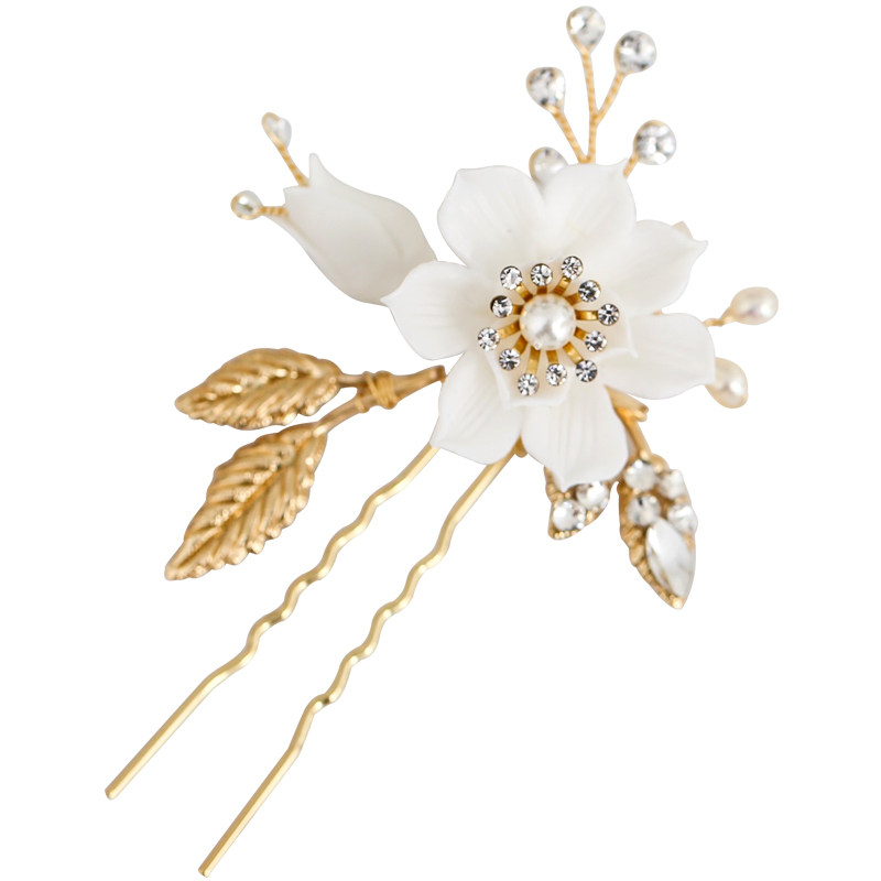 White Floral Cuddles Small Flowers Bride Hair Fork Hair Hairpin Garden Head Accessories Hair Accessories Water Drill Inlaid Foliage Wedding Accessories