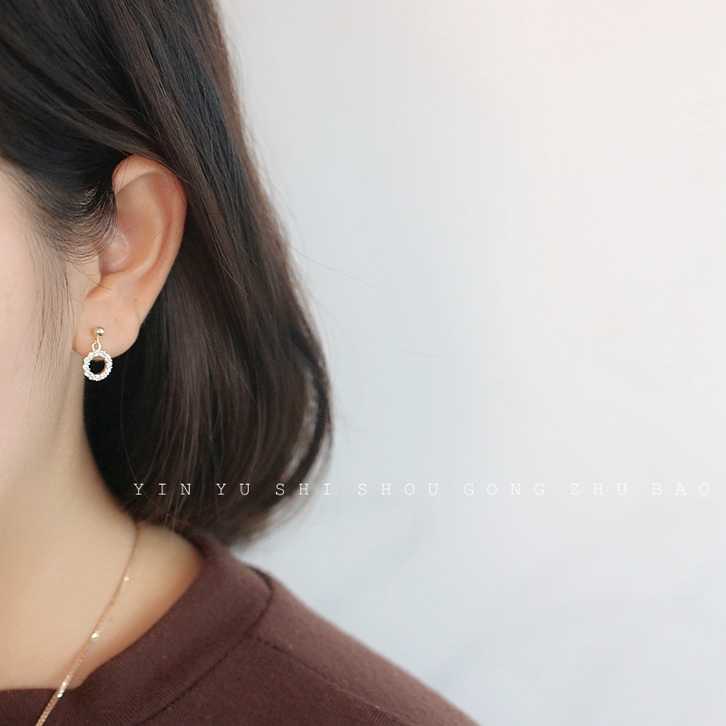 Japan and Korea hollow drill ring exquisite earring 925 pure silver plated 14k gold - plated ear nails small circle ear crashes
