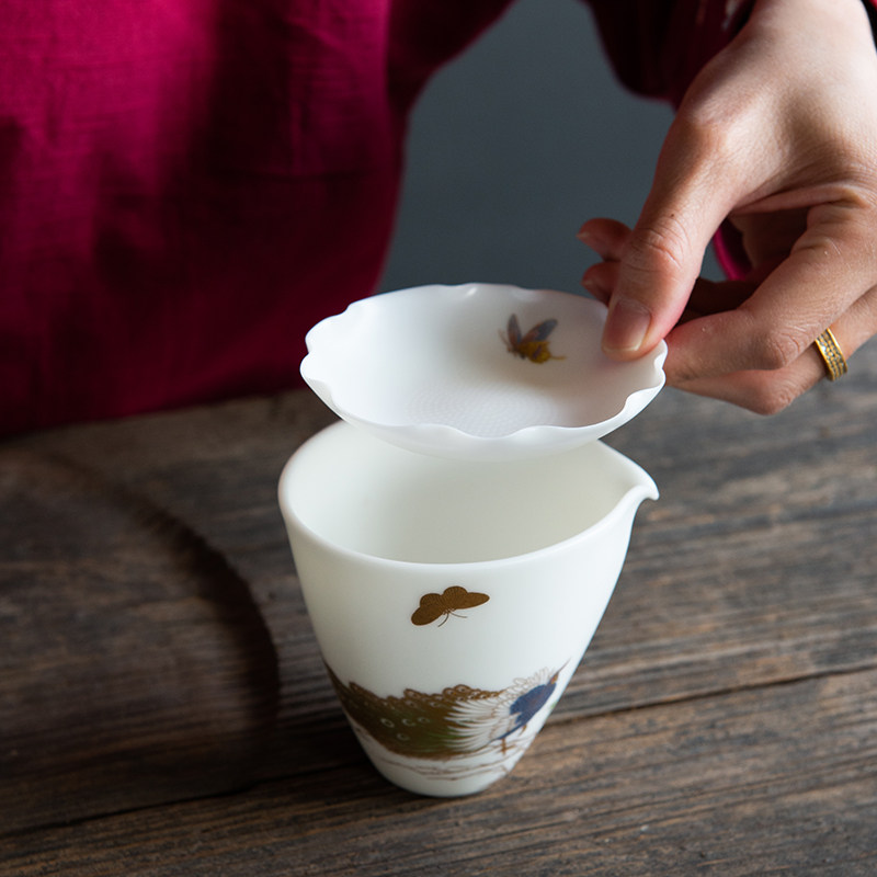 Sheep Fat Jade Gold Tea Filter Sheep Fat Jade Peacock Tea Filter White Porcelain Fuyue Welcome Tea Filter