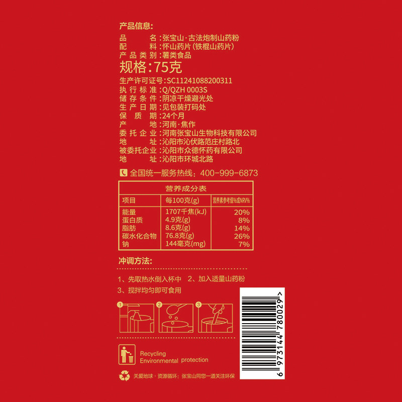 Zhang Baoshan Gufa Yam Powder Flagship Store Iron Stick Huai Huaihuai Mountain Drug Iron Stick Yam Pure Henan Char 75g