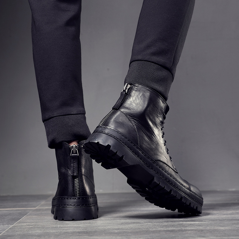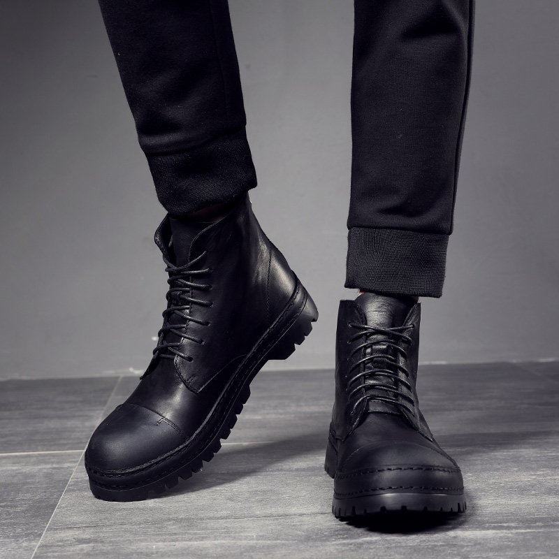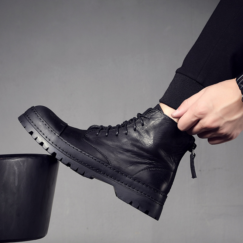 Martin boots men's autumn handmade first layer cowhide boots men's British mid-tube leather boots men's thick bottom big toe shoes trend