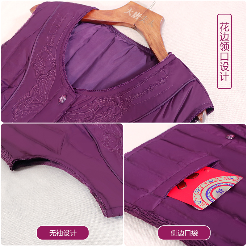 Middle-aged and elderly down vest female grandma's vest wear mother's winter light and thin inner liner old man's wife warm clothes