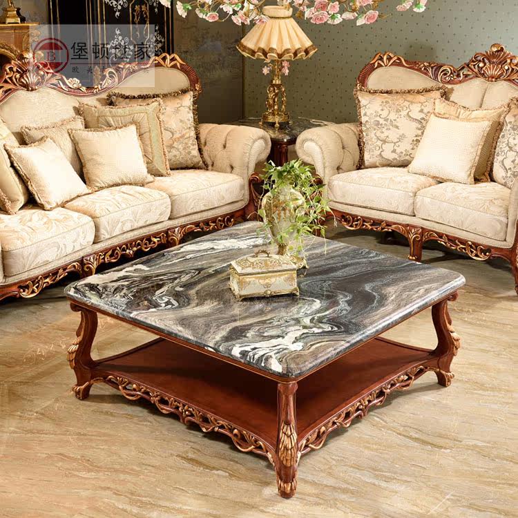 Mansion villa European and American style solid wood TV cabinet combined retro short cabinet containing cabinet natural marble ground cabinet living room