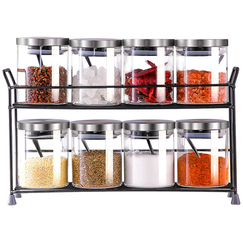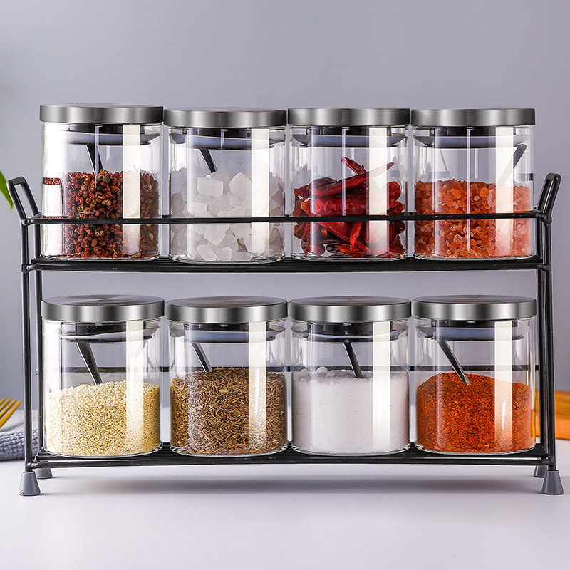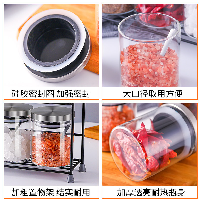 Glass seasoning bottle set kitchen large salt shaker household seasoning box combination seasoning bottled salt sealed jar