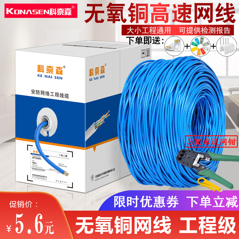 Oxygen-free copper network cable super five class 6 six gigabit network broadband computer line home high-speed POE monitoring line 300m