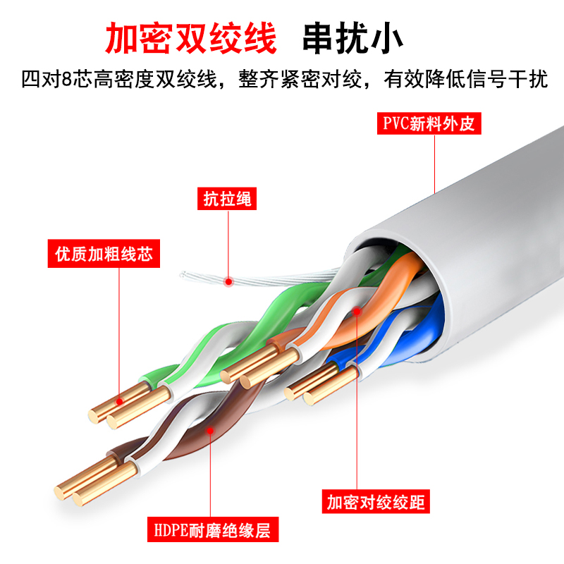 (Speed Edition) 0.52 Copper Clad Silver--Gray (Speed Edition)0.52 Copper Clad Silver--Blue (Speed Edition)0.52 Copper Clad Silver--Black (Outdoor Edition Waterproof Sunscreen)Double Sheath 0.52 Copper Clad Silver (Monitoring Edition)0.46 Oxygen-free Copper--Gray (Deluxe Edition)0.5mm Oxygen-free Copper--Gray (Deluxe Edition)0.5mm Oxygen-free Copper--Blue (Outdoor Edition)Double Sheath 0.5mm Oxygen-free Copper (Deluxe Edition)0.52mm Oxygen-free Copper--Gray (Deluxe Edition) 0.52mm Oxygen-free Copper--Blue (Outdoor Edition)Double Sheath 0.52mm Oxygen-free Copper (Gigabit Edition)Ultra-Six Class 0.58mm Copper-Clad Silver--Gray (Gigabit Edition)Ultra-Six Class 0.58mm Copper-Clad Silver--Blue (Gigabit Edition)Ultra-Six Category 0.58mm Copper--Black (Gigabit Edition)Super Six Category 0.56mm Oxygen-free Copper--Gray (Gigabit Edition)Super Six Category 0.56mm Oxygen-free Copper--Blue (Gigabit Edition)Ultra Six Class 0.58mm Oxygen-free Copper--Gray (Gigabit Edition) Super Six Class 0.58mm Oxygen-free Copper--Blue (Outdoor Gigabit Edition)Ultra-Class 6 0.58mm Oxygen-free Copper (Gigabit Shielded Version)Ultra-Class 6 0.58mm Oxygen-free Copper--Blue Gray