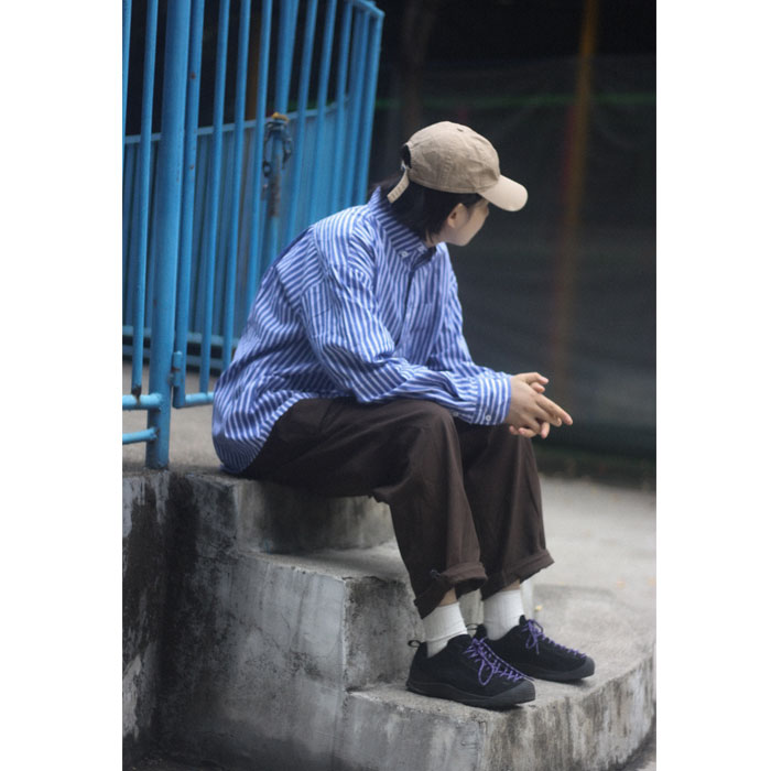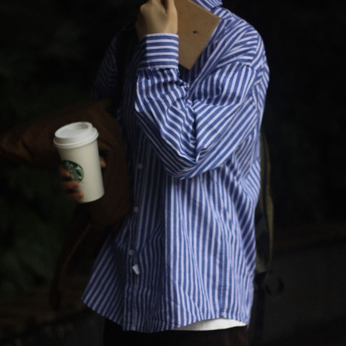 Nobodyknows Japanese retro simple literary fresh two-color striped loose neutral long-sleeved shirt shirt