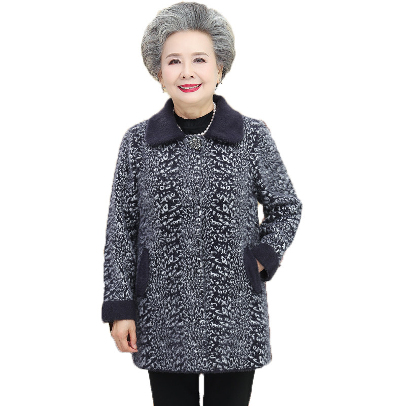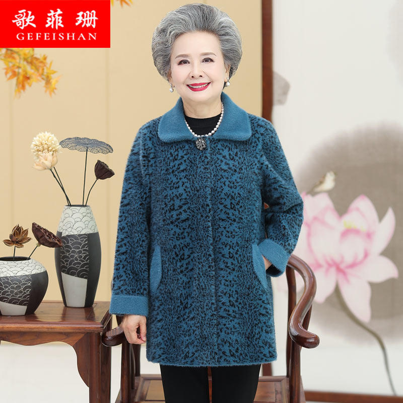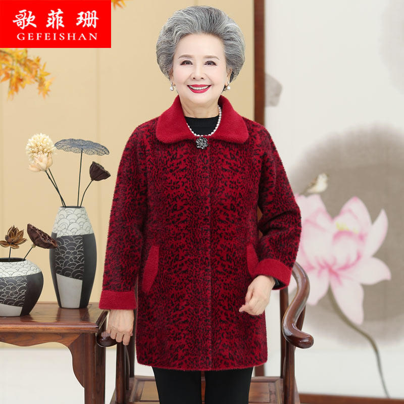 Grandma's winter mink velvet medium-long coat plus fat plus size fat mom's clothing to lead autumn and winter wool clothes