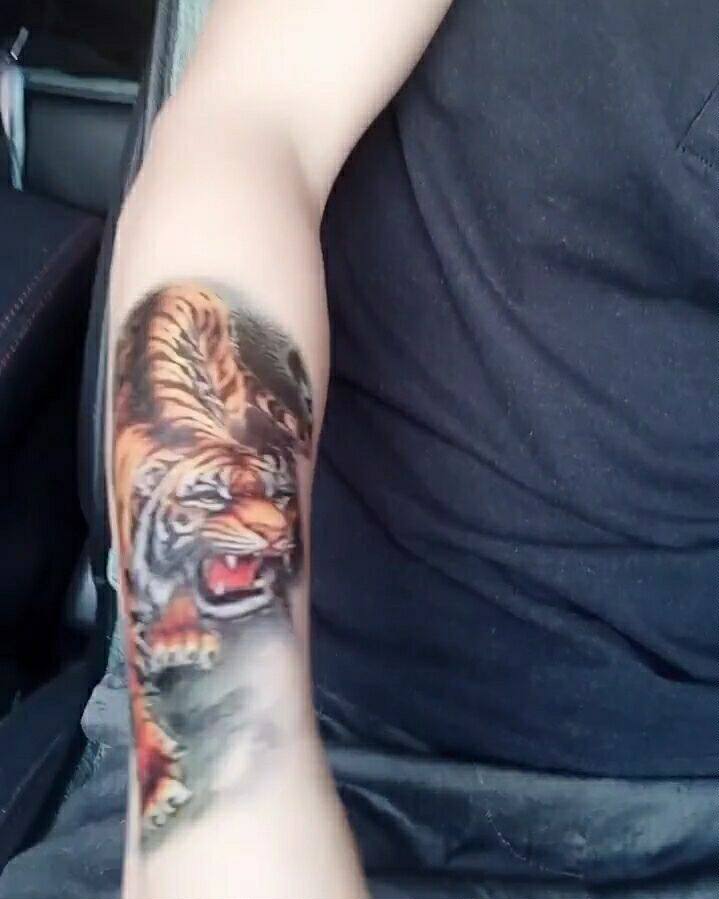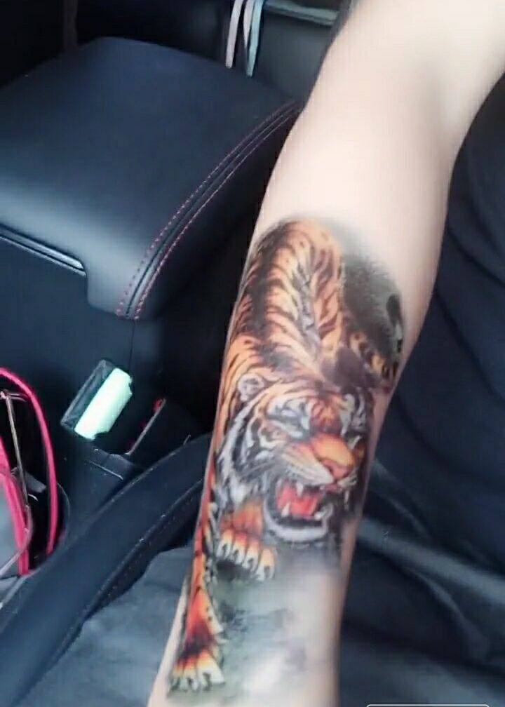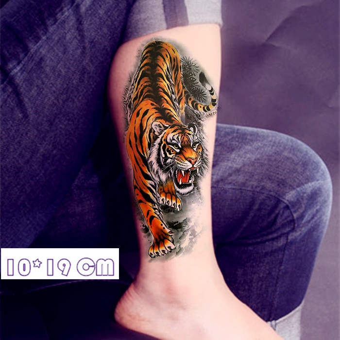 Tattoo Sticker Waterproof Floral Arm Tinged Green Persistent Tiger Emulation Lower Mountain Tiger Bully stickler personality Scar Floral Arm Floral Legs