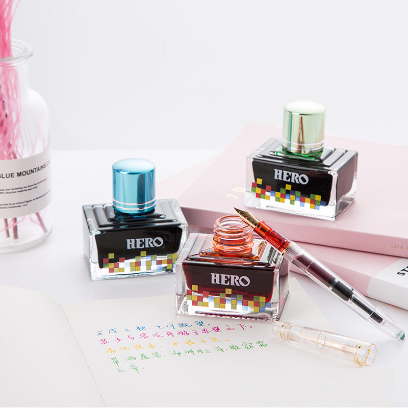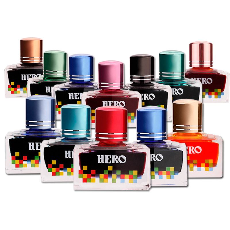 HERO Hero Color Ink Multicolor Color Pen Ink ten Two Color Hair Burning Friendly Non Carbon Ink Unblocked Ink Candy Fruit Color Art Hand-painted Available Dip Fountain Pen 40ml Demonstration Ink