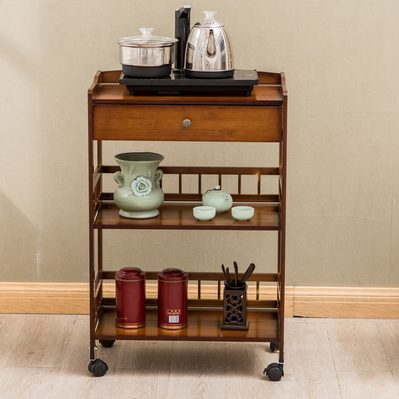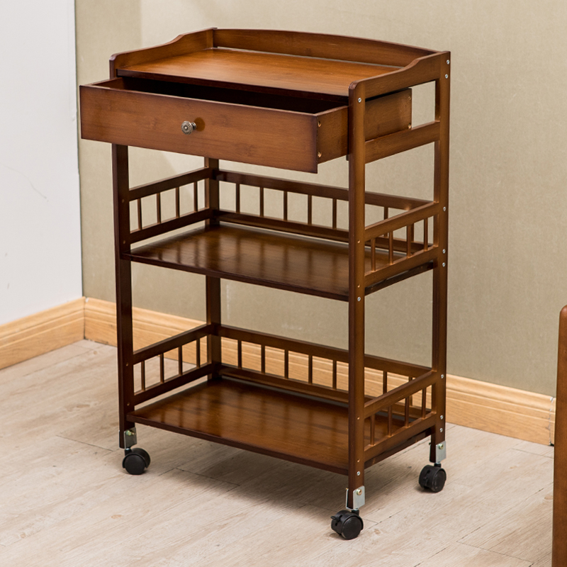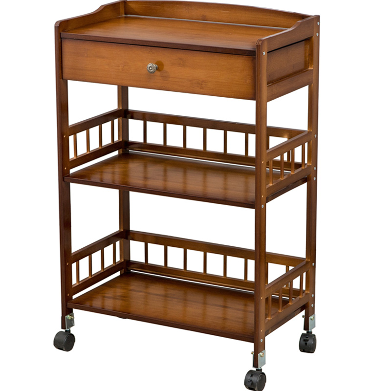 Double color cart Three layers of original color cart Three layers of tea color cart Three layers of original color Cart Cart Three Layers Tea Color Drawer Cart Triple Color Drawer upgrade Trolley Full Bamboo Waterproof Triple Color Cart Full Bamboo