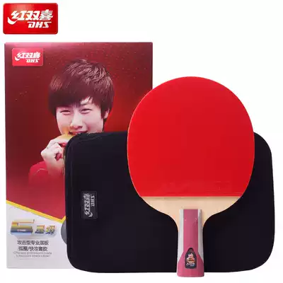 Red Double Happiness Table Tennis Racket Single Shoot Six Stars Rising King Student Professional 6-star Straight Ping Pong finished shot 1