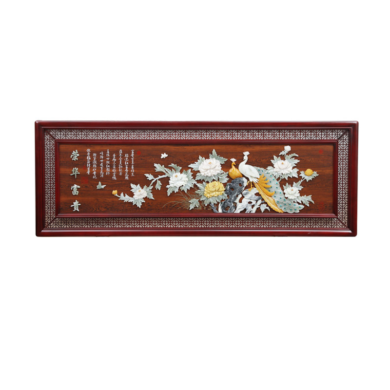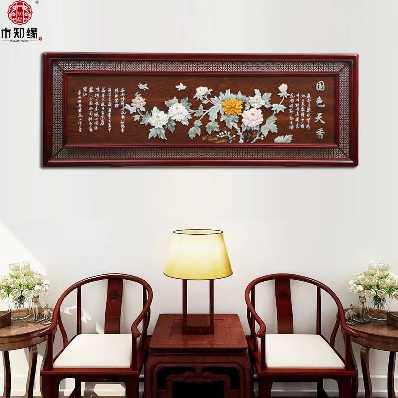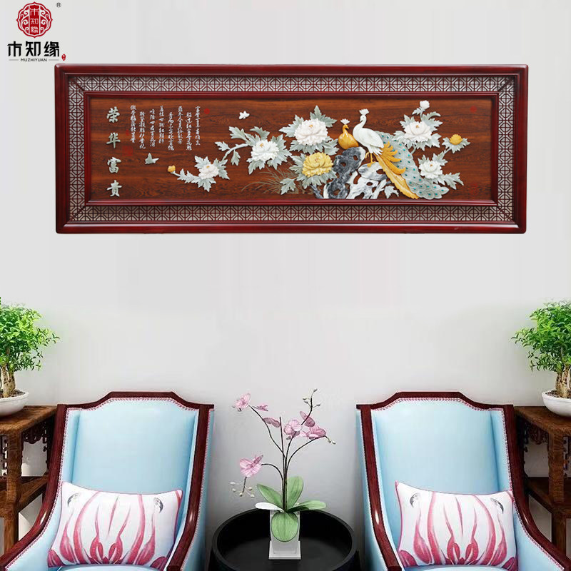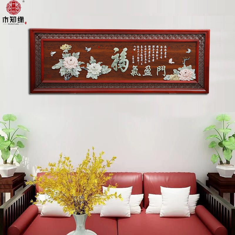 Dongyang wood carving horizontal screen hanging piece new Chinese solid wood jade decoration drawing room TV sofa background wall