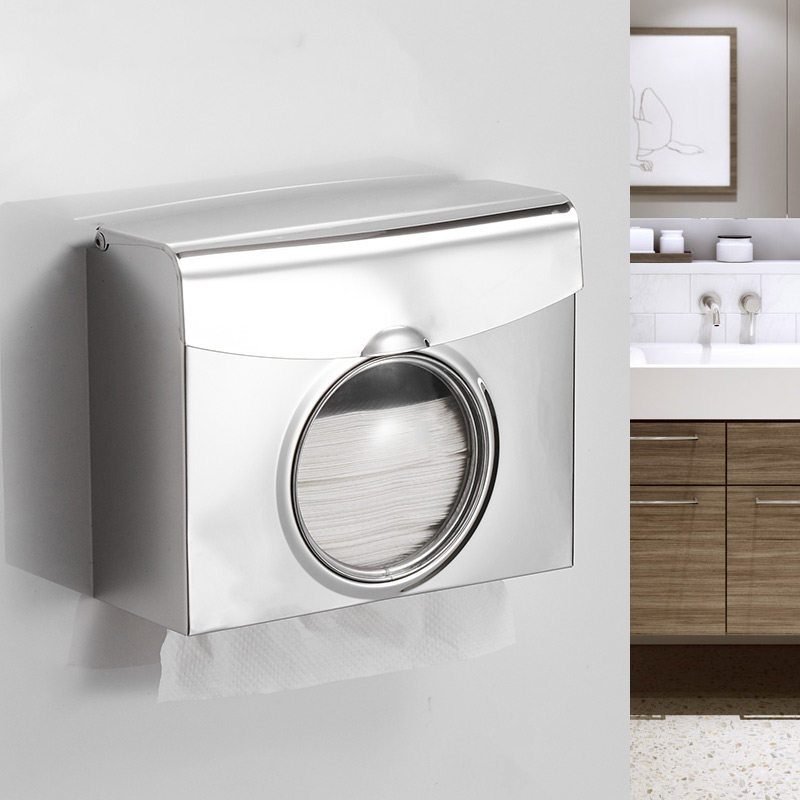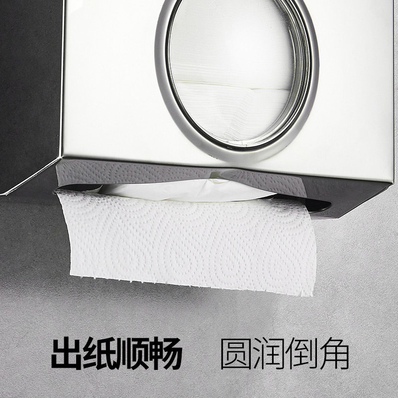 Exit paper from the upper flap-Punch through the upper flap-Punch-free up and down paper can be taken-Punching up and down paper can be taken-Punch-free square visual extraction toilet paper holder (brushed short)-Punch