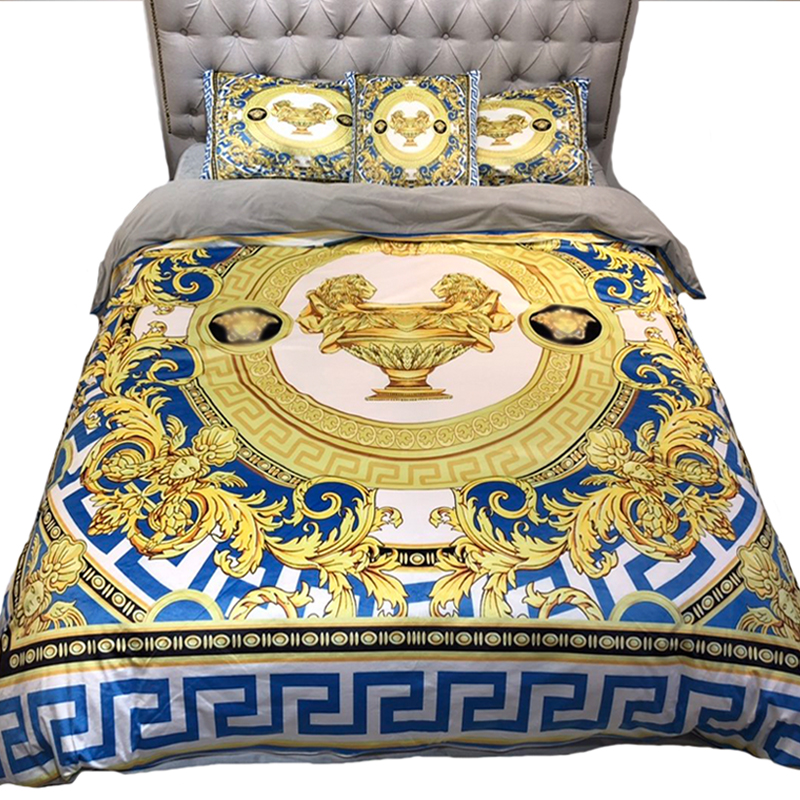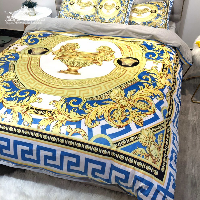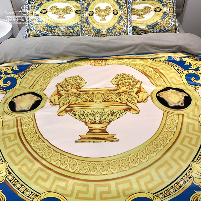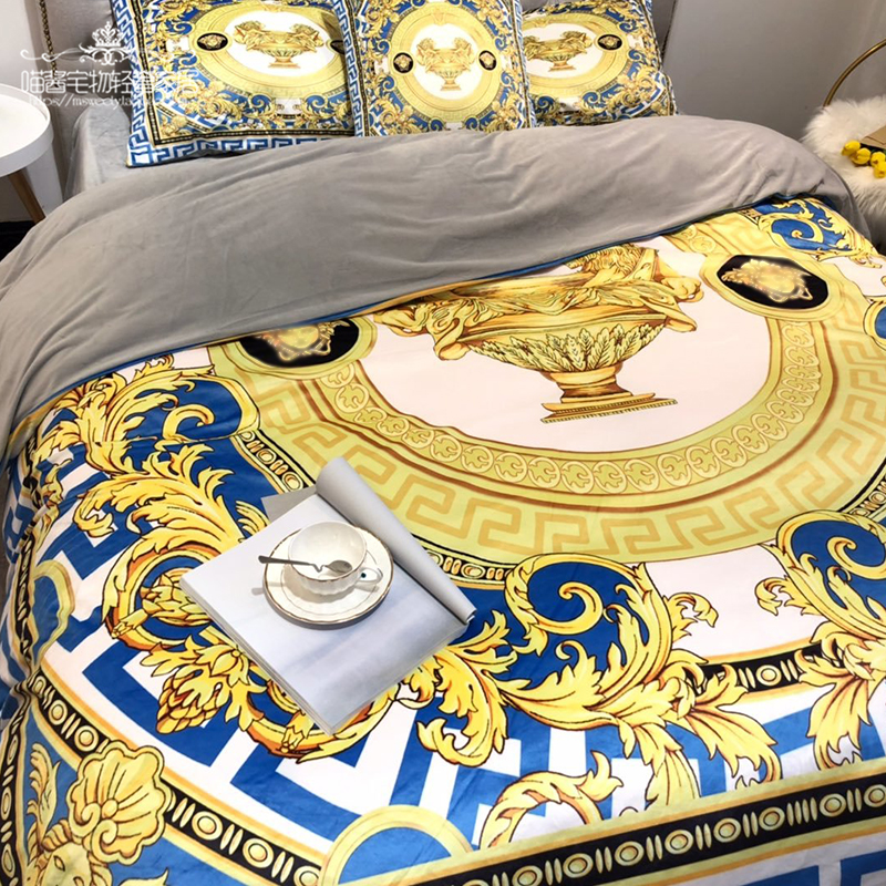# New #European luxury Medusa autumn cow milk stained warm and thick printed plate room bedding four pieces