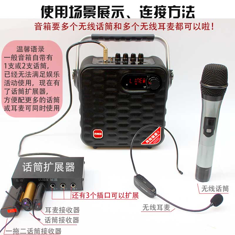 Wireless microphone expander one-to-four-six-way splitter speaker wired microphone hub multi-way extension cable