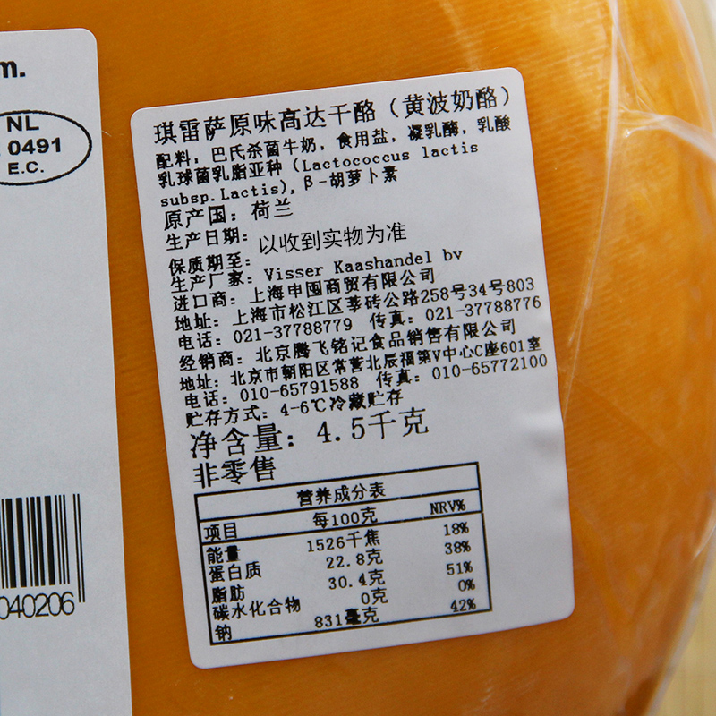 Dutch gouda cheese Kiresa original gouda cheese yellow wave cheese yellow spinach cheese about 4kg