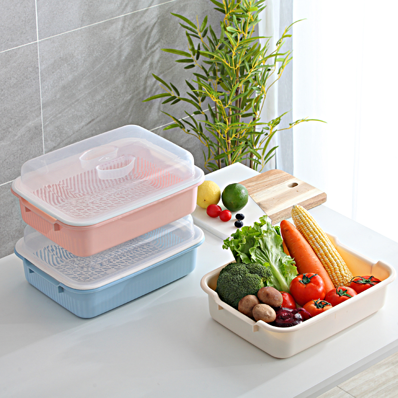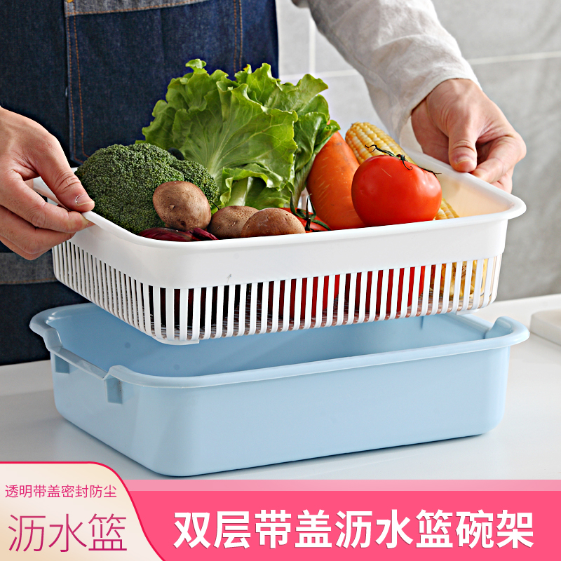 Household vegetable wash basin double-layer drain basket to wash fruit and vegetable plastic vegetable basket kitchen modern living room creative fruit plate
