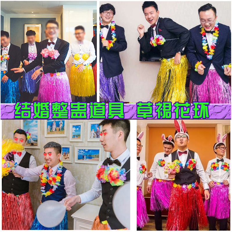 Green purple red yellow blue hair ring a pair of wreaths around the neck of a four-piece plastic bra clown nose wig nose wig pink orange color 40CM color random 60CM