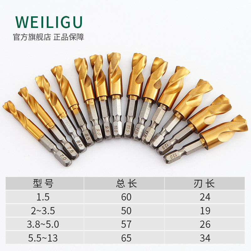 WEILIGU angle iron plate stainless steel special twist drill bit 6 35 hexagonal shank Q type ultra short drill wood 1 5-13mm