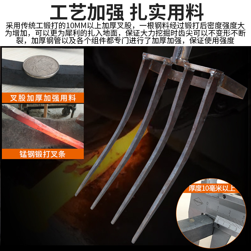 Manganese steel forging tipping fork deep turner reclamation steel fork shovel ripper up onion ginger digging sweet potato peanut tool