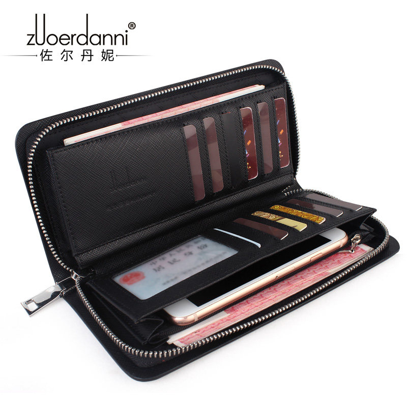 Zordani long men's wallet top layer cowhide zipper men's wallet business men's mobile phone wallet men's wallet