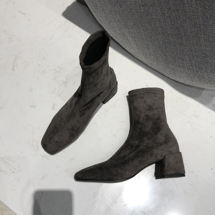 OMG is too good-looking, power power with the same short boots, leather square toe skinny boots, thick heel socks, elastic boots