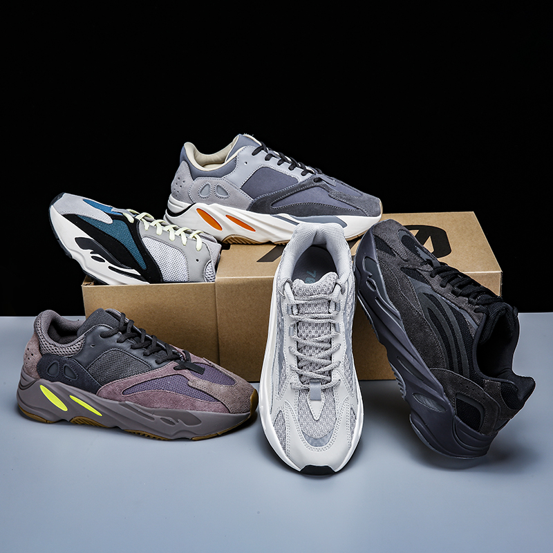 Turnkey YEEZY Coconut 700V2 Old Daddy Shoes Women Shoes Full Black Soul Thick Bottoms Heightening Casual Sports 500 Tide Shoes