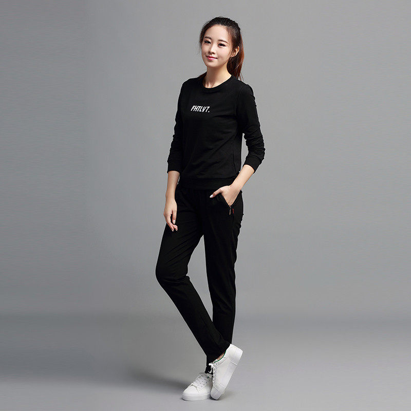 Autumn Winter Plus Velvet Sport Long Pants Women Running Fitness Cotton Straight Barrel Casual Pants Long Pants High School Students Black Large Size Sweatpants