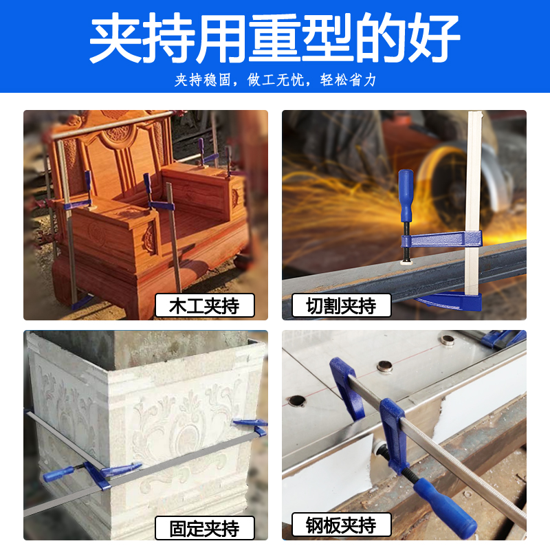 F clamp, F clamp, woodworking clamp, fixing fixture, strong clamp, heavy duty imposition clamp, mold clamp, extended clamp, stone clamp