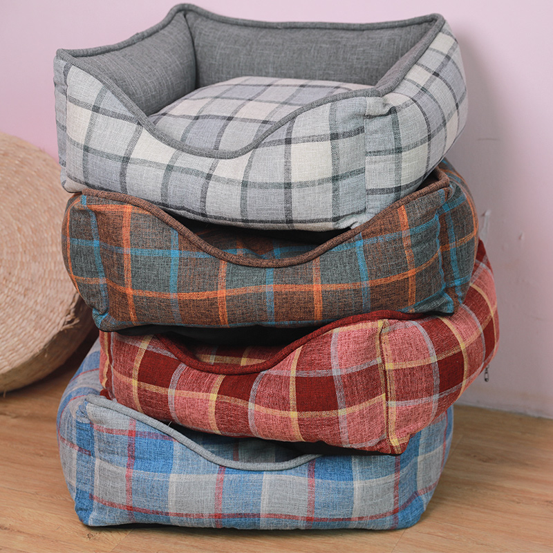 Dog Cohorts Autumn Winter Warm Dog Beds Double-sided washable anti-slip face-fighting teddy dog sleeping plaid quadrilateral socket cushion