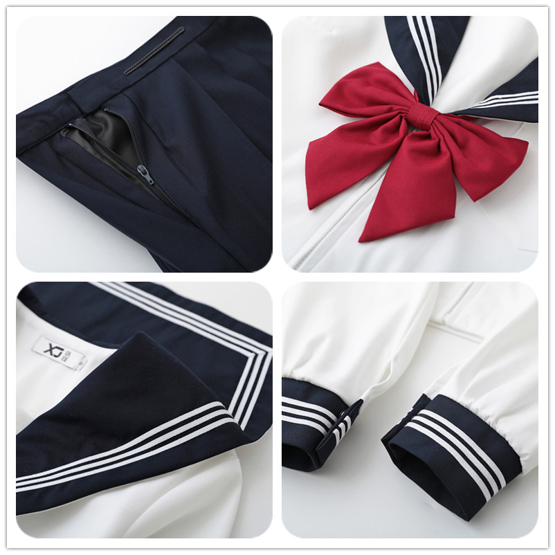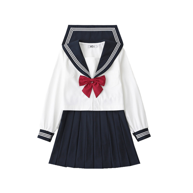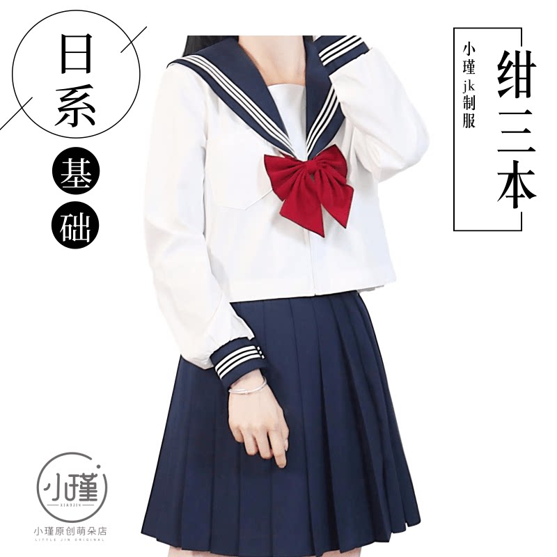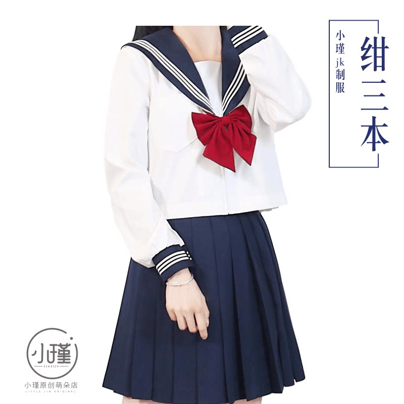 Day Ensemble Jk Uniform Sailor Clothes Foundation Collection of Qingbai Three Benn College Wind suit Female Spring and Autumn High temperature Pleated Skirt