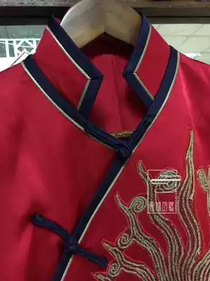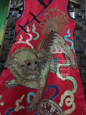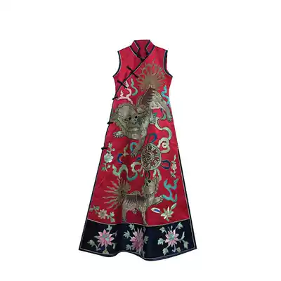 Cloud decoration totem original design women's robe Western dress Republic of China old embroidered lion rolling hydrangea contrast V-neck robe