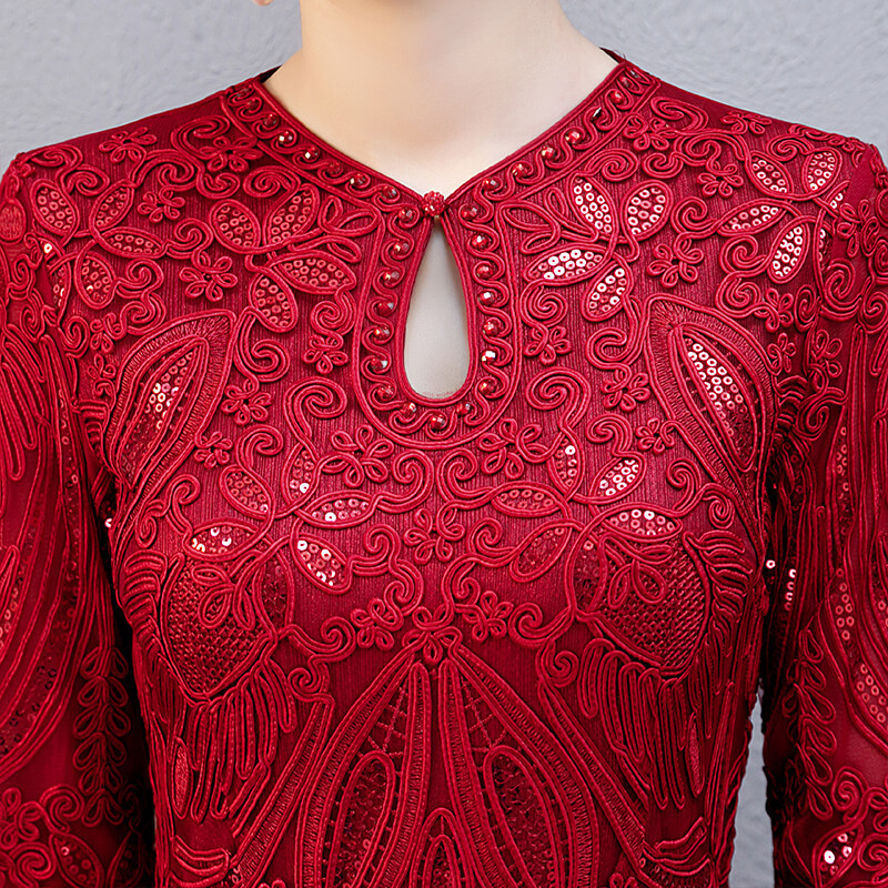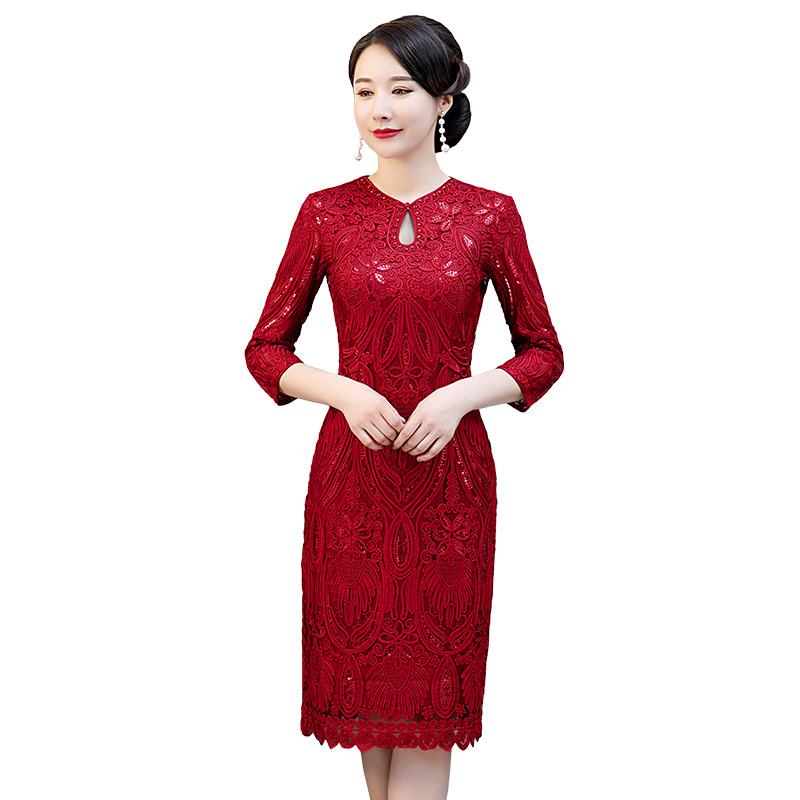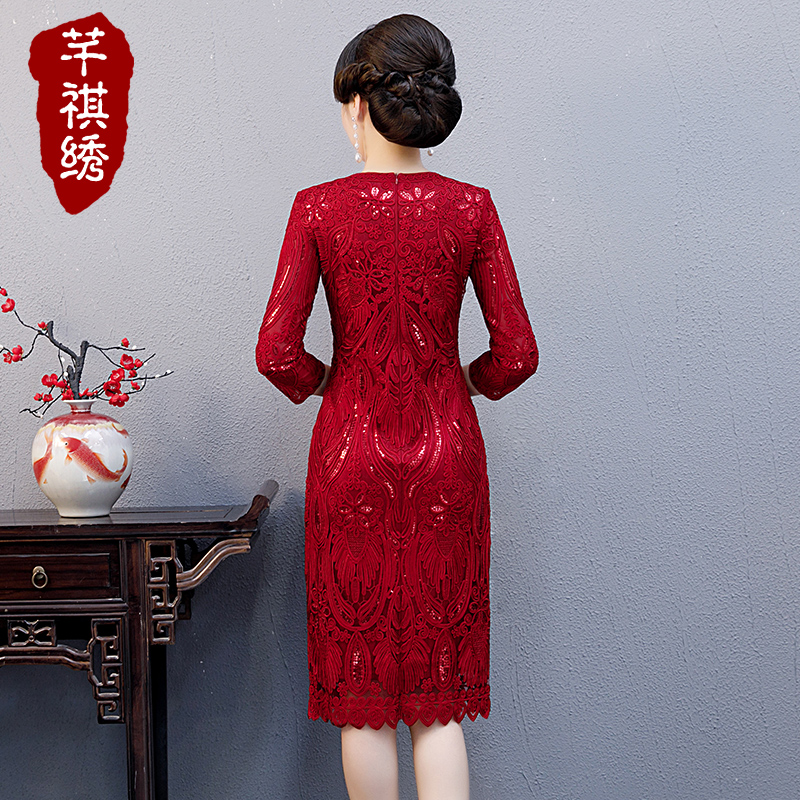 Happy mother-in-law wedding party dress wedding display slim improvement long sleeve qipao spring and autumn section Mama wedding gush thicken gown woman