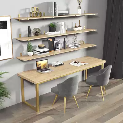 Simple modern bedroom solid wood computer desk with bookshelf integrated table small apartment study wall shelf