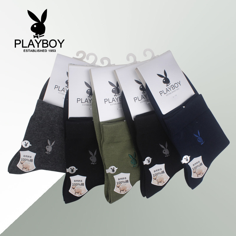 Playboy Men's Socks Men's Pure Cotton Four Seasons Autumn and Winter Comfortable Sweat-absorbing Breathable Fashion Sports Leisure Cotton Socks
