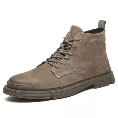 Martin boots men's leather spring plus velvet Korean version of the trend high-barrel tooling boots all-match middle-barrel men's boots British trend shoes