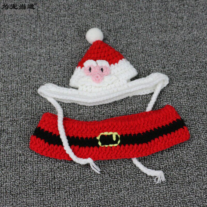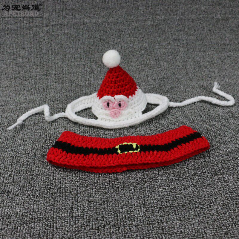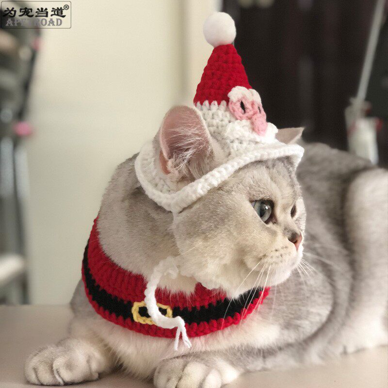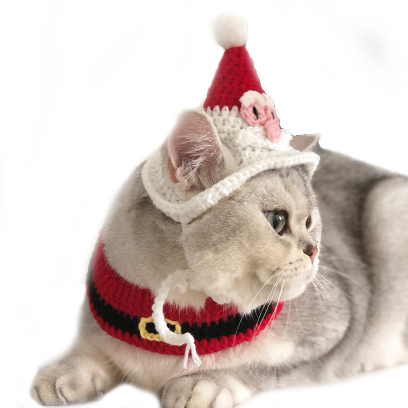 Christmas man hat false collar set pure hand-woven pet accessories cat Christmas hat for pets